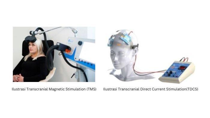 Misalnya, alat Transcranial Magnetic Stimulation (TMS) yang menggunakan gelombang elektromagnetik atau alat Transcranial Direct Current Stimulation (TDCS) yang menggunakan arus listrik berdaya lemah.