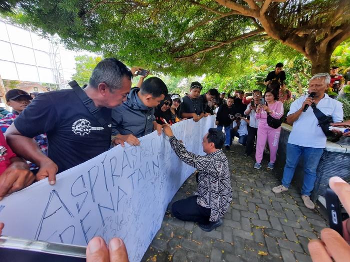 Ia juga ikut menandatangani spanduk yang berisi komitmen dukungan untuk proyek penataan Alwa.