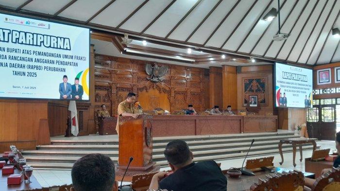 TRIBUNJOGJA.COM, KLATEN - DPRD Kabupaten Klaten menggelar rapat paripurna dengan agenda penyampaian jawaban Bupati terkait pandangan umum fraksi terkait rancangan peraturan daerah (Raperda) Rancangan Anggaran Pendapatan dan Belanja Daerah (RAPBD) Perubahan 2025, Senin (7/7/2025).