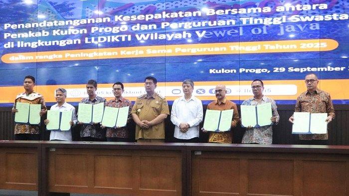 TRIBUNJOGJA.COM, KULON PROGO - Bupati Kulon Progo Agung Setyawan menandatangani Perjanjian Kerja Sama (PKS) dengan 33 perguruan tinggi di DIY. Penandatanganan berlangsung pada Senin (29/09/2025) di Aula Adikarta, Kantor Sekretariat Daerah Kulon Progo.