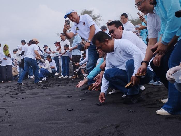 Aksi pelepasan tukik dan bersih-bersih pantai turut diikuti oleh Wakil Bupati Kulon Progo Ambar Purwoko.