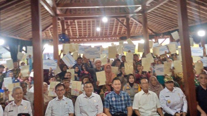 TRIBUNJOGJA.COM, GUNUNGKIDUL - Menteri Koordinator Bidang Infrastruktur dan Pembangunan Kewilayahan Agus Harimurti Yudhoyono (AHY) menyerahkan ratusan sertifikat tanah kepada warga di Kabupaten Gunungkidul, Daerah Istimewa Yogyakarta, pada Rabu (8/10/2025).