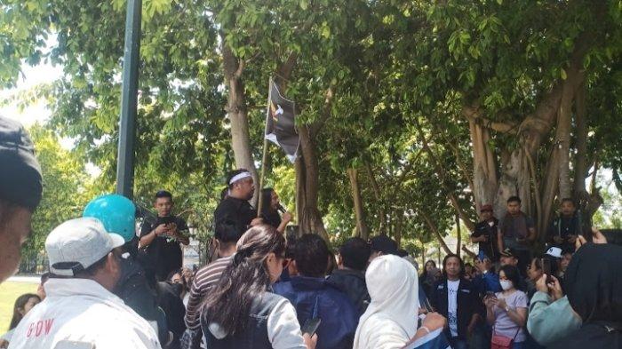 TRIBUNJOGJA.COM, KLATEN - Lagu Maju Tak Gentar mengema di Alun-alun Klaten, Kabupaten Klaten, Jawa Tengah, pada Rabu (1/10/2025). Lagu tersebut mengema dinyanyikan ratusan seniwan-seniwati dari berbagai daerah yang menggelar aksi damai di Alun-alun Klaten.