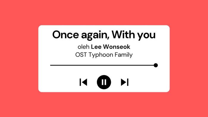 TRIBUNJOGJA.COM - Drama Korea Typhoon Family merilis original soundtrack (OST) part 4 berjudul “Once again, With you” oleh Lee Wonseok pada 2 November 2025.