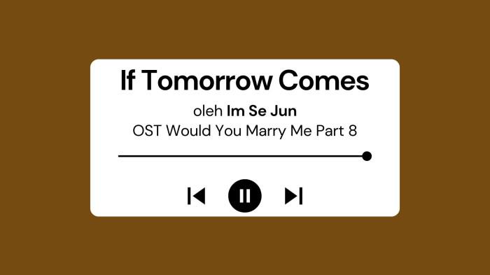 - Terjemahan atau arti lagu If Tomorrow Comes OST Would You Marry Me Part 8