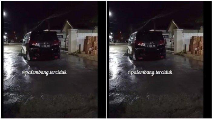 Mobil mewah jenis Toyota Alphard tersebut sempat terjebat di tengah jalan yang baru saja dicor selama tiga jam.