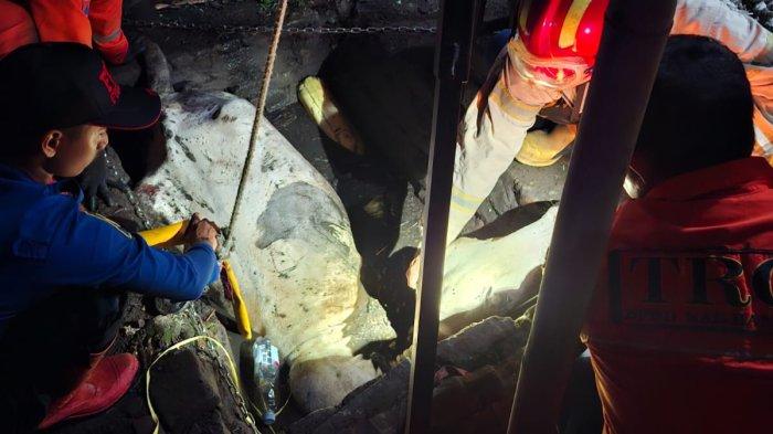 Tim Pemadam Kebakaran (Damkar) Kabupaten Klaten pun turun tangan untuk mengevakuasi sapi berbobot sekitar 700 kg itu.
