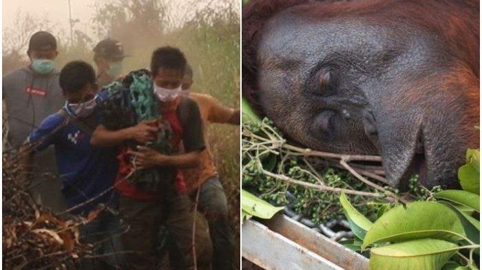 Saat ditemukan, sepasang Orangutan ini terjebak di atas pohong yang berada di tengah lahan dengan kobaran api karhutla.