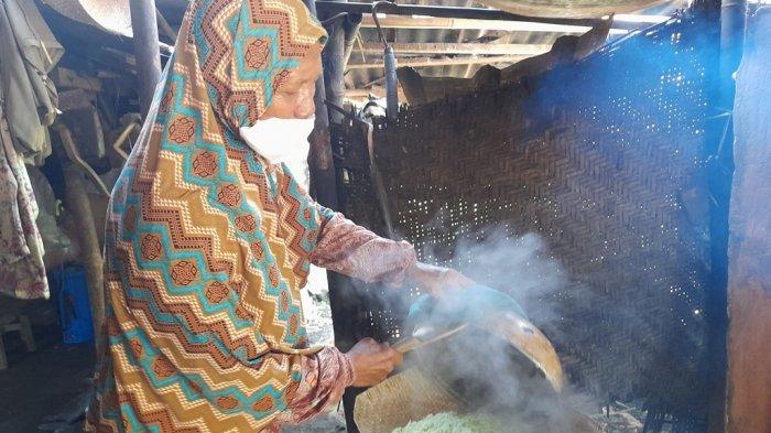 Wajikem (67), selaku perajin tape ketan Hijau Yu Jikem, di Rt 03/Rw 33, Padukuhan Mejengan, Kalurahan Pandowoharjo, Kapanewon Sleman,