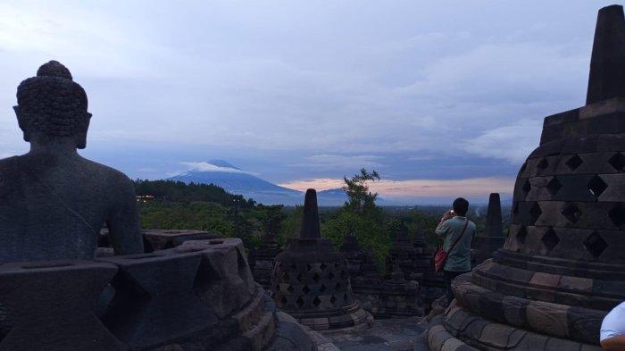 TRIBUNJOGJA.COM, MAGELANG – Wisatawan kini berkesempatan menikmati keindahan matahari terbenam dari puncak Candi Borobudur.